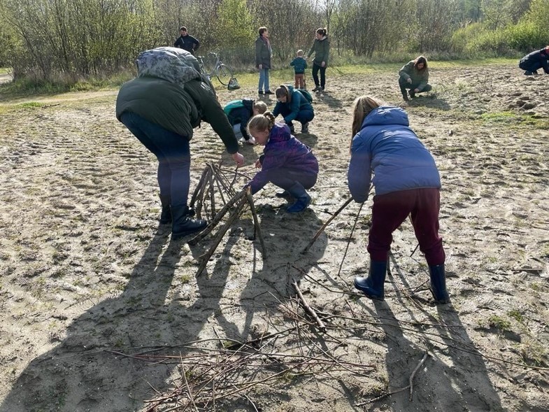 Gebruik alleen materialen die in overvloed aanwezig zijn en waarmee je geen schade toebrengt aan het ecosysteem. Een speelbos is een ideale locatie hiervoor!