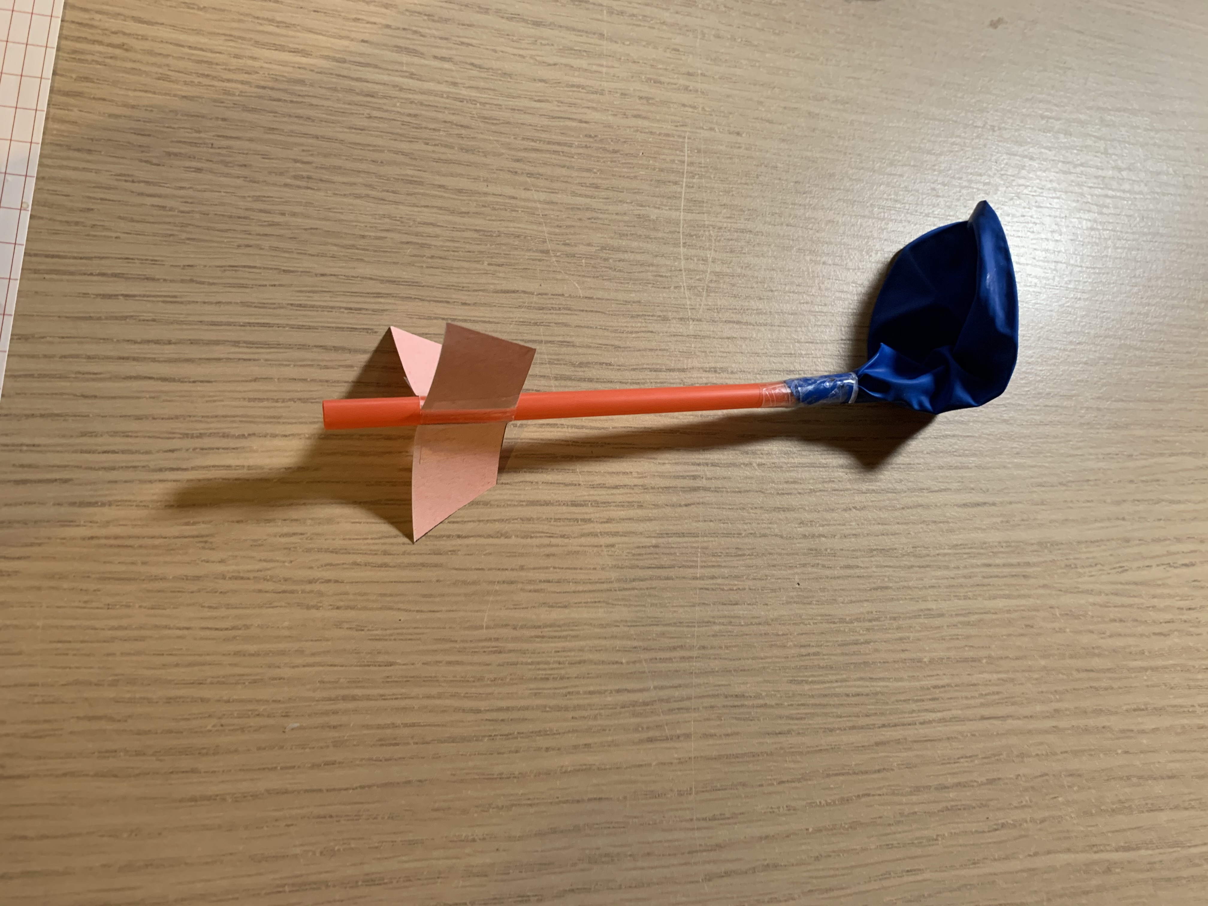 Door op de ballon een rietje te bevestigen is de stuwing van de lucht al iets meer onder controle. Maar de controle is optimaal wanneer de vinnen worden bevestigd. Zij zorgen ervoor dat de ballon mooi vliegt.
